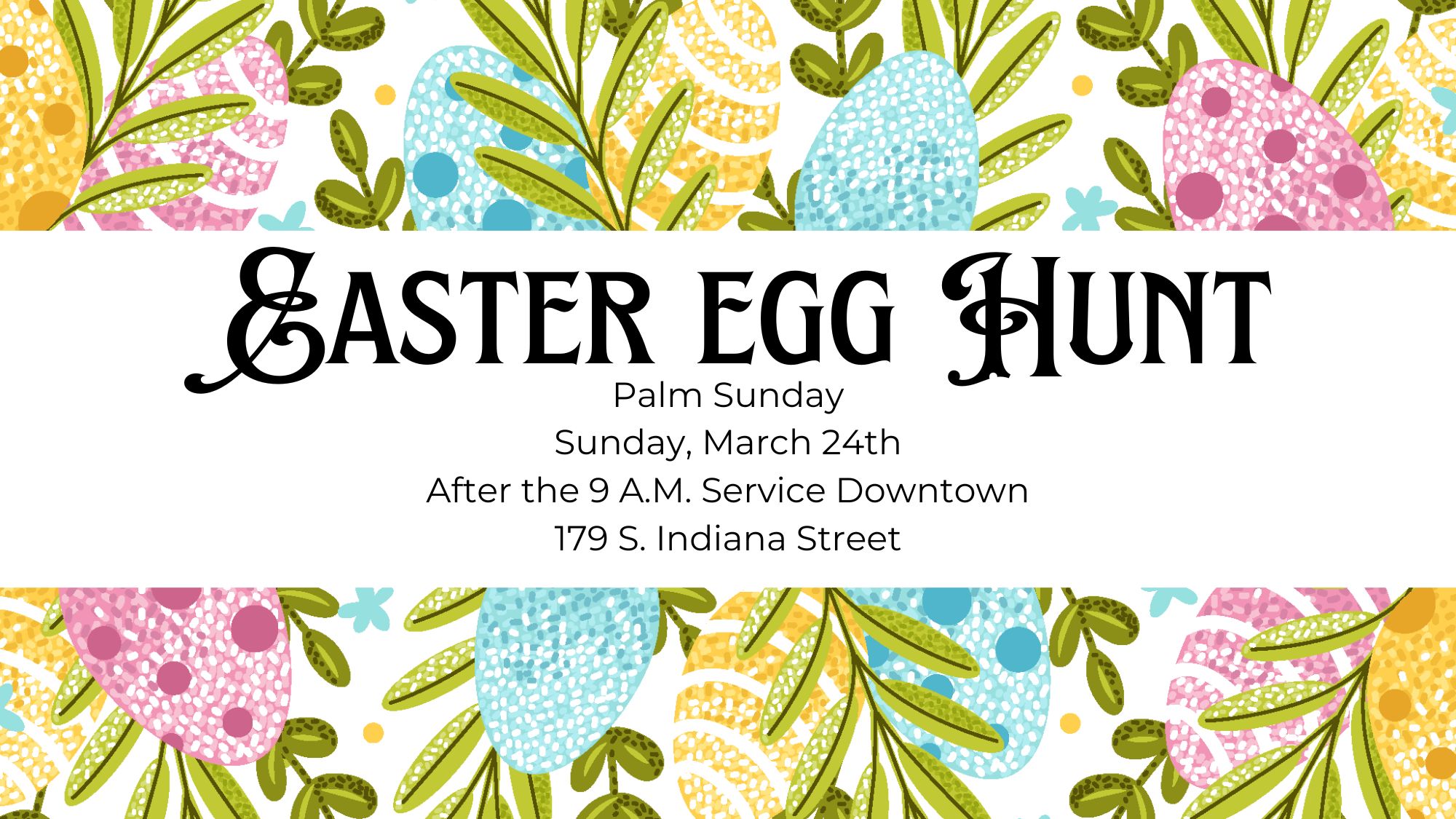 Join us on Palm Sunday for a worship filled day (including Palm parade) and hang out afterwards for an Easter Egg Hunt for the kids!